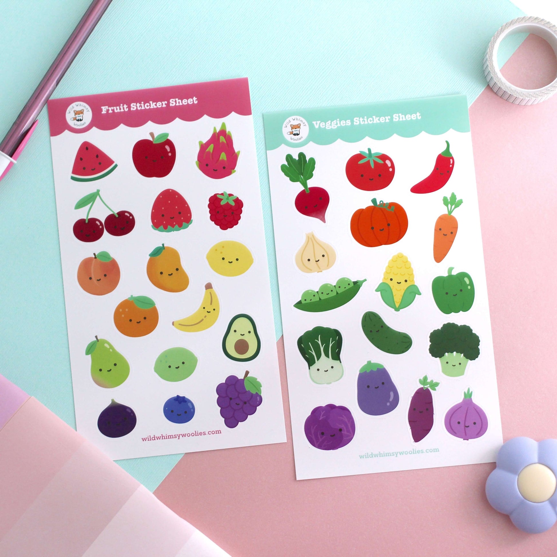 This rainbow fruit-themed sticker sheet features cute and happy colourful fruits. A perfect gift for fruit lovers and stationery addicts!