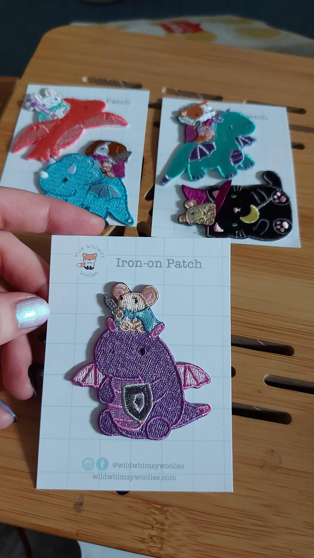 Add a touch of adventure to your wardrobe with this adorable patch of a brave mouse knight with a cape and sword bravely riding atop a chubby dragon! This patch is perfect for anyone who likes a little fantasy in their wardrobe! Stick this little mouse and dragon duo on your jeans, jacket, tote bag and hat and you'll be ready for your next adventure.
