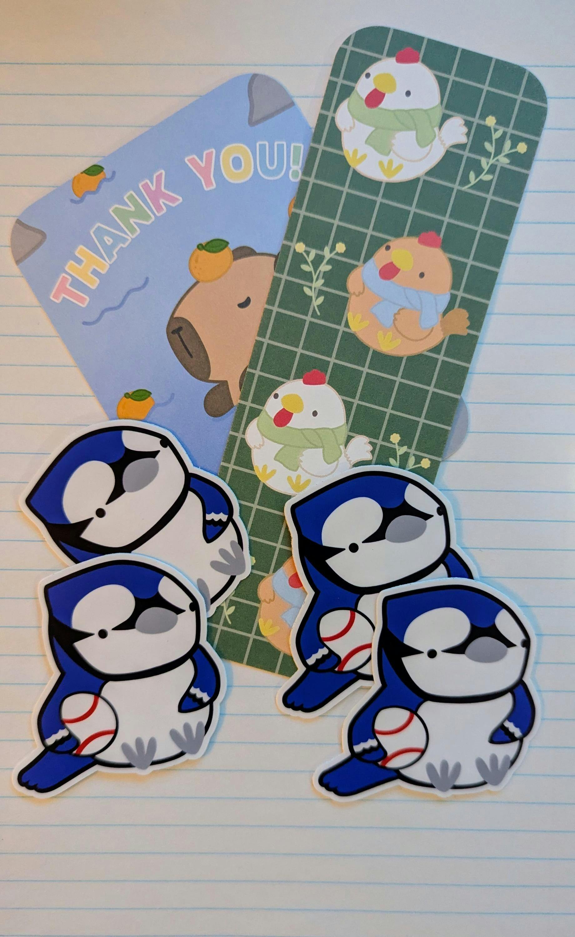 Show your team spirit with this charming vinyl sticker of a blue jay holding a baseball. Add it to your laptop, phone, tablet, water bottle, tumbler, planner... It also makes the perfect gift for baseball fans or your Canadian friends.