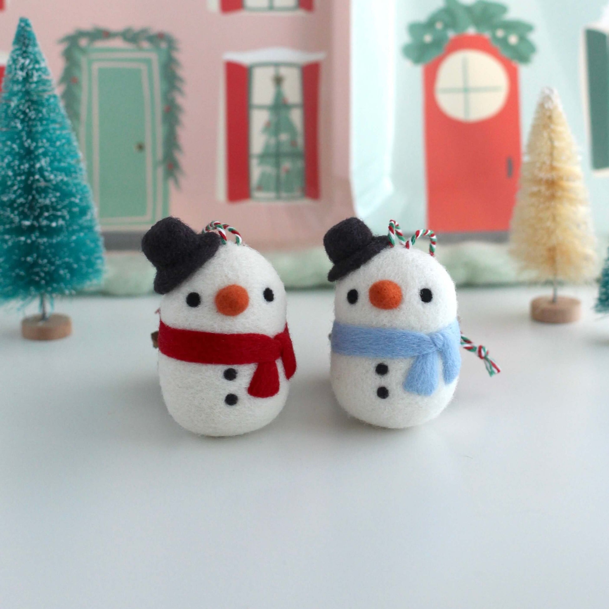 Add a little wonder to your Christmas tree with this adorable needle felted snowman ornament. He comes wearing a dapper top hat and scarf and is handmade with love out of 100% natural wool.