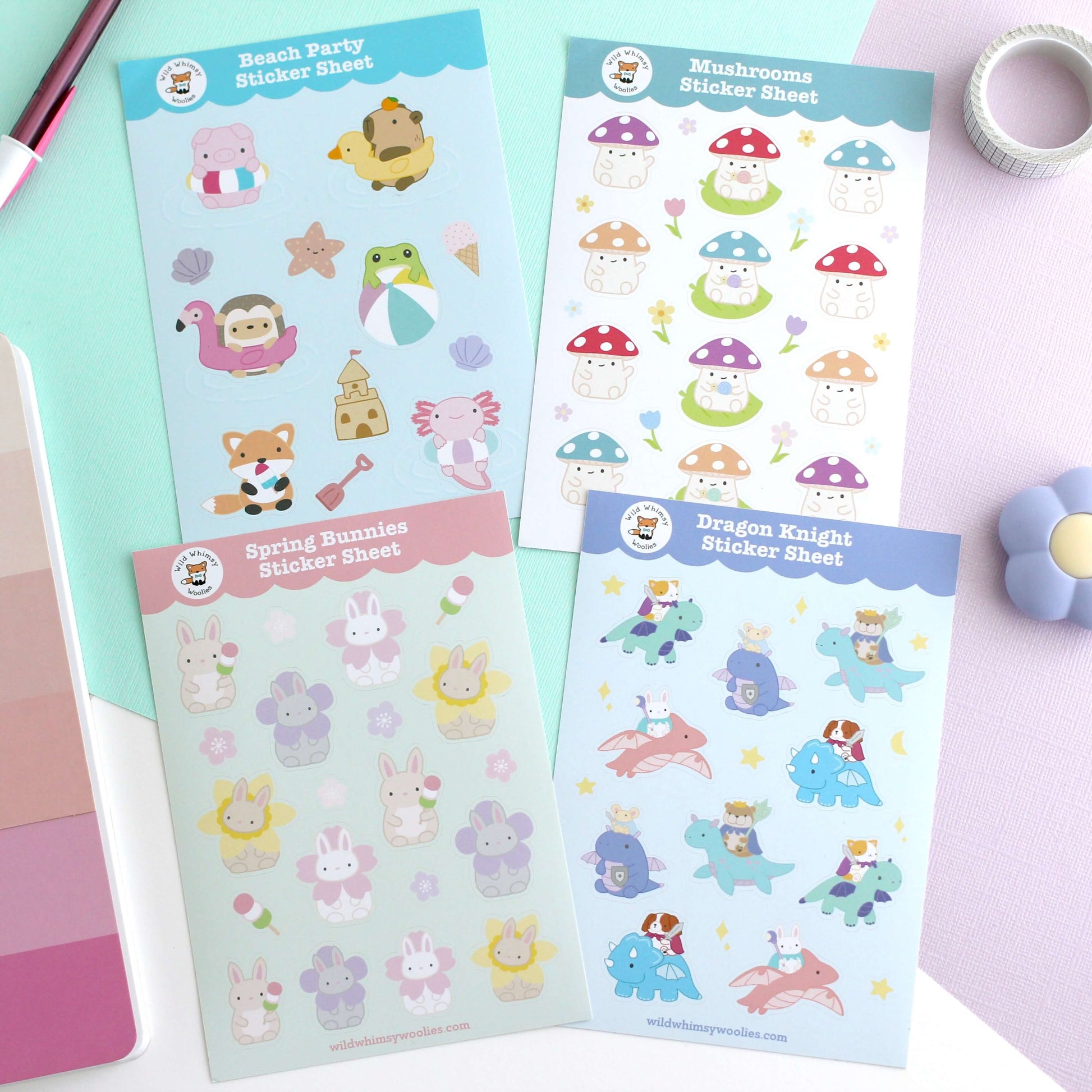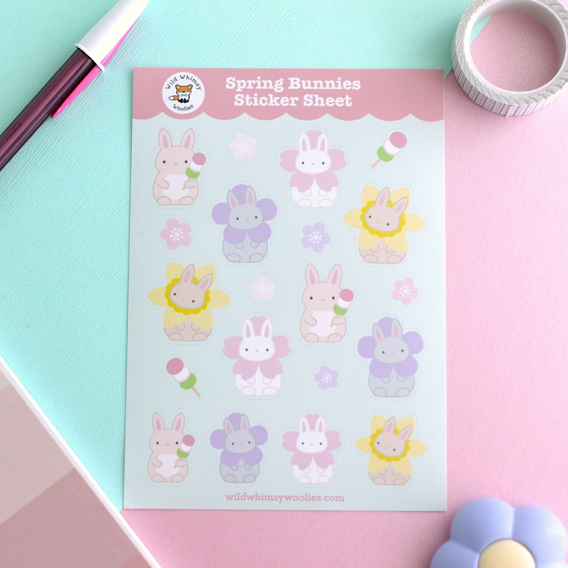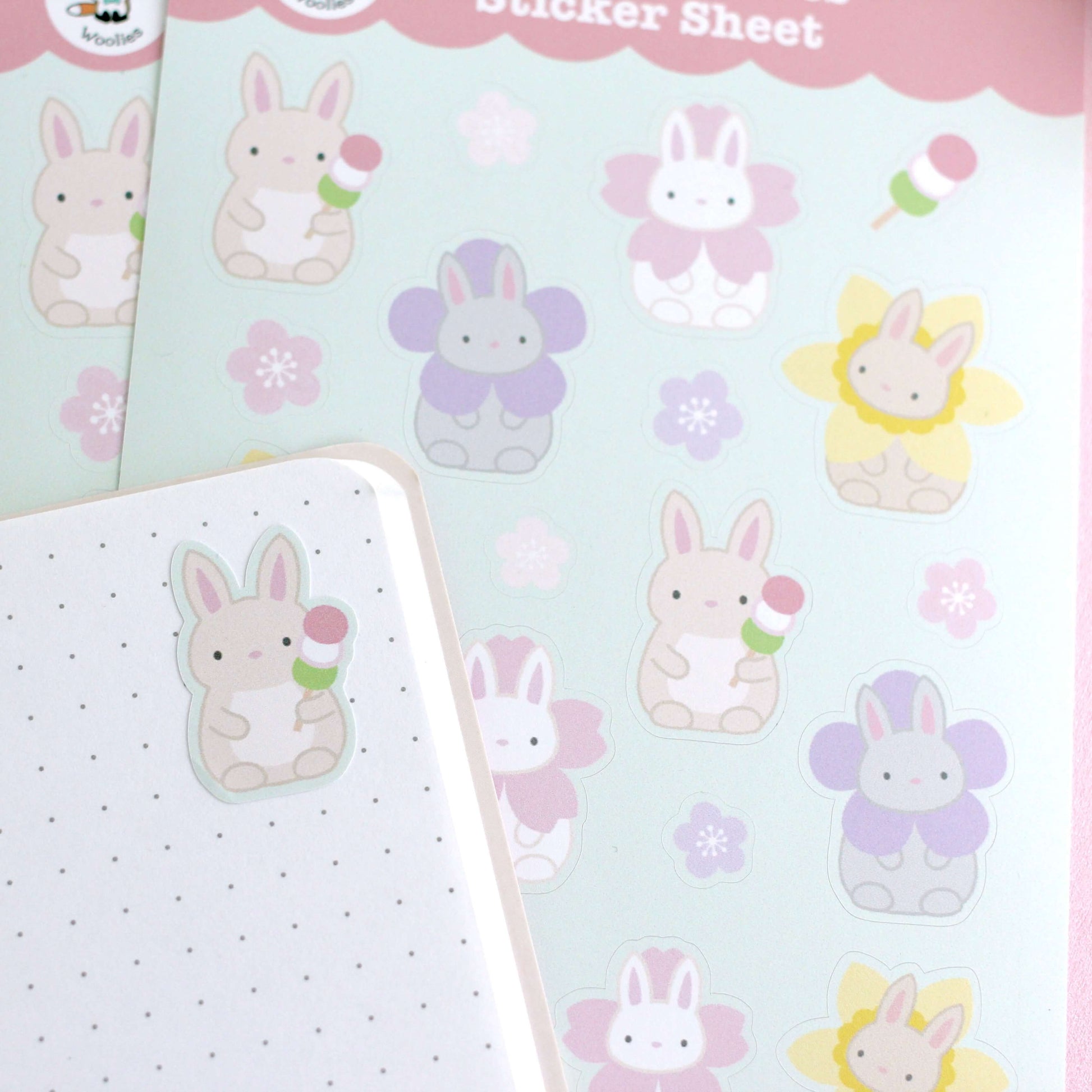 A perfect gift for bunny lovers and stationery addicts! This sticker sheet features cute spring bunnies in flower costumes and eating dango. It also features small stickers of sakura flowers and dango.